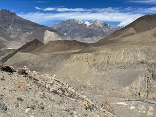 It was supposed to be an easy couple hours to Kagbeni but it ended up taking us a bit longer due to some washed out trail that made our trek a little spicier. The views were fantastic and a definite change from the previous day. We were descending into a canyon and everything was dry; snow could only be seen on distance peaks. We could see lots of pinnacles or hoodoos, very strong desert vibes.